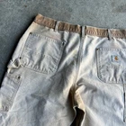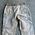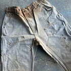 Vintage carhartt faded brown double knee work wear carpenter pants. Awesome belt fade. Measure 35x33.5 and a 9.5 leg opening. Please check measurements before purchasing. I do my best to show any flaws in pictures. Quick shipping! Bundles encouraged! @ants_haul on Instagram. 395!!!