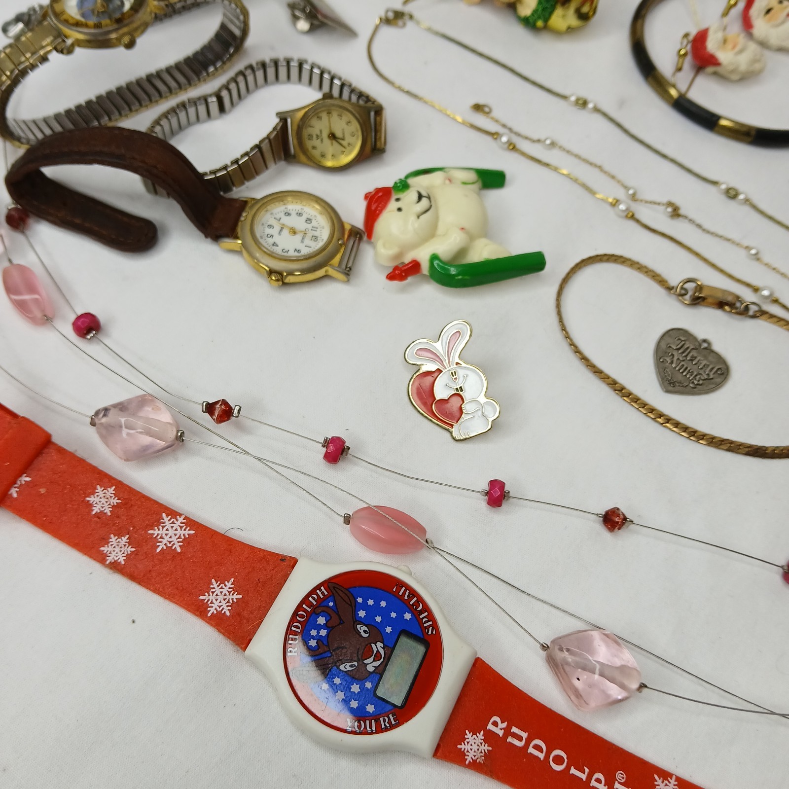 Mix lot of jewelry and watches. Old, mismatched and untested. Please see listing photos for details. Ships USPS ground advantage mail. • Feel free to contact me if you have questions on any of my items. • Buy with confidence! I pride myself in complete transparency with item descriptions and photos for your complete satisfaction. • Colors in listing photos may vary slightly due to your screen calibrations and settings. • Please ensure your shipping address is correct prior to payment for a smooth transaction. • All fragile items will always be packaged securely prior to shipping. • Visit LK Auctions to view my current selection of items and if you like what you see please follow my store.