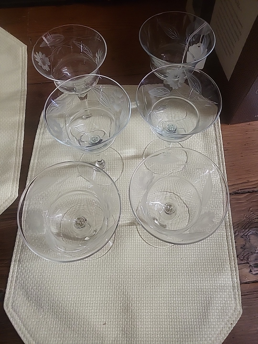 This set of 6 vintage crystal etched leaf champagne glasses exudes elegance and charm. Made from high-quality crystal, these coupes feature intricate etched designs of leaves, adding an air of sophistication to any cocktail or champagne serving. Perfect for special occasions or everyday use, these glasses are sure to impress guests and elevate any drinkware collection. Cheers to style and sophistication with these timeless and classic champagne coupes.