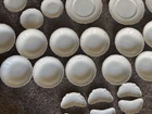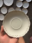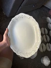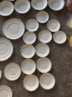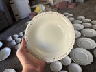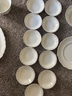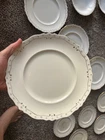 This is a vintage Johnson Bros England white plate 86 piece set with a gold scalloped edges. Featuring a Victorian style and made from porcelain and ceramic. For the plates being over 100 years old they are still in good condition. Some crazing does exist on about 1/2 of the plates varying in degree. It is crazy to think about all the generations and stories that these plates have existed through and I am excited for someone to cherish them and make their own memories for generations to come. 86 pieces total Johnson England 1902 Oct 21st gold rimmed 12-7" plates 12-6.5" plates 9-10" plates 12-7.5" bowls 11-5.25" bowls 12- half moon bowls 1-12.5" long platter 9- cups 2- 6" wide x 3.5" tall bowls 1 with ornate lid 1-8" serving plate 1- 9.5 long bowl platter 1- 16" long large platter 1- 12" long large platter bowl with ornate lid 1- gravy bowl 1- ceramic pitcher Brief History about the plates manufacturer. The Johnson Brothers Fine China Company was founded in 1883 in England , specifically in Staffordshire , an area renowned for its pottery and porcelain manufacturing. It was established by four brothers— Wilfrid , Alfred , George , and Henry —and quickly became one of the most well-known pottery manufacturers of the 20th century. The company’s focus was on producing durable, affordable, and beautifully designed dinnerware. Key Milestones: Early Success : Johnson Brothers gained a reputation for producing high-quality yet reasonably priced porcelain, catering to both the everyday consumer and upscale markets. They were particularly known for their transferware patterns, which allowed for more intricate designs at a lower cost. Acquisition by Wedgwood : In 1968, the company was acquired by the Wedgwood Group , a major name in English pottery. This brought Johnson Brothers under the umbrella of one of the most famous brands in the ceramics world. Production Techniques : Johnson Brothers were known for their innovative techniques, including handcrafting their patterns and introducing mass production methods that helped them scale to international markets. Important Facts: Royal Commissions : The company was known to produce fine china for the British royal family and other notable clients. This included bespoke dinnerware sets for significant events. International Reach : The brand’s reach extended far beyond England. Johnson Brothers china became widely popular in the United States and other parts of the world, cementing their status as a global brand. Cultural Impact : Johnson Brothers products were not only practical but also culturally significant. They played a role in shaping the everyday dining experience in many homes, where their patterns and designs became a part of household traditions. Though no longer operating as an independent company, the legacy of Johnson Brothers Fine China continues through its collectors' market and the ongoing influence of its designs. Happy to answer any questions the plates are all bubble wrapped and ready to be sent to their new house.