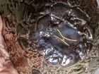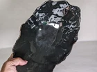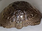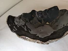 Vtg handmade ceramic gold/mirror toned and black jagged edge topped bowl. Amazing hand made beautiful shiny black in interior and amazing gold/mirrored gold outside. See all photos prior to your buying decision. One of a kind, wonderful accent in your home. No chips or cracks that i could see. Does have some wear on the flat bottom from sitting.