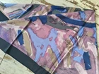 This beautiful vintage scarf is a unique addition to any wardrobe. Made from high-quality silk, it features an elegant abstract pattern with quilted accents. The scarf is handmade and multifunctional, perfect for use as a headwrap, necktie, or scarf. The vibrant multicolor design is perfect for adding a pop of color to any outfit. The scarf is perfect for summer and spring, and its square style makes it a great accessory for any occasion. It is vintage and has a timeless look that will never go out of style. This scarf is perfect for women who love to accessorize and want a one-of-a-kind piece to add to their collection.