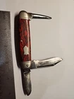 This vintage Hibbard Spencer-Bartlett knife is a must-have for any collector of folding knives. The knife features a drop point, clip point, and punch blade made of carbon steel, with a frame lock for secure use. The handle is made of bone and the knife is manually opened. This original and authentic knife is a vintage piece, perfect for any collector looking for a unique addition to their collection. The knife's multi-color design adds to its appeal and makes it a great conversation starter. Don't miss out on the chance to own this rare piece of history.
