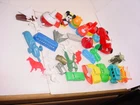 Here is a lot of little toys. Some might be from cereal boxes or gum ball machines, I'm not sure. Most are plastic. The red head's eyes and tongue pop out when you move his jaw. The one top is a pencil sharpener. Some have damage, missing parts or need cleaning.