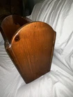 Solid wooden magazine/book holder with two slots. Has a beautiful Ruane Manning painting of Canadian Geese on the front. Great condition.