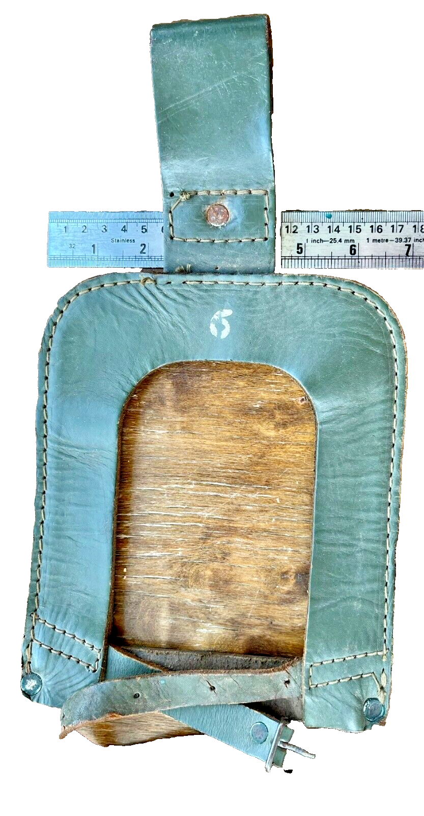 Vintage olive green leather shovel holder for Argentine Army lineman shovel in very good condition. This model it was used between the 1970s and the late 80s with the olive green leather field combat belting or equipment. Some shovels of this type were used by Argentine infantry troops in the Malvinas War (1982). Please note that you are buying a military lag item with many years of service and in the exact condition that can be seen in the photos. Every item is as pictured (picture of actual item). Any defects not mentioned but visible in the pictures will be considered as described. We combine shipments internationally, anywhere in the world. All shipments have tracking number. The published rate corresponds to the shipment to the United States. Please consult for other countries. We ship items out as soon as possible, but this will not always be the same day as your order. In general, please add 1-2 business days to allow for processing time. Should you have any questions do not hesitate to contact us. You will be answered promptly. Payment method: PayPal. Thanks for choosing us! We appreciate your business! 3183