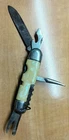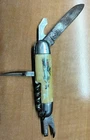 This vintage knife is a rare find with its pearlized handle and 5 tools, no damage, the side without the man & horse (marked Cana) Canadian Mountie has two cut outs, they are not chips, they are intentional so you can access the blade easier. 7 1/2".when longest blade is extended. It is a great addition to any collection and has a unique charm to it. The knife may have some natural wear and tear due to its age, which is expected from any vintage item. Marked made in Germany.
