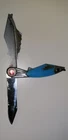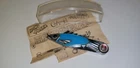 Crafted with a classic touch, this vintage pocket knife takes the form of a blue fish, an original design that harkens back to 1980. With its manual opening mechanism, this ambidextrous tool is as functional as it is unique. The carbon steel blade material ensures durability and resilience, while the vivid blue hue adds a distinctive flair to the piece. The knife comes from the Russian Federation, carrying the authenticity of a true vintage collectible. It's a standout piece for enthusiasts and collectors alike, complete with its original box and passp. This item is not just a utility gadget; it's a statement of style and a slice of history.