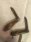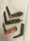 Orange one marked Japan. Vintage pocket knives Japan Lot of 4. Condition is "Used". They are rusty I didn’t know how to properly clean them.