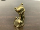 Vintage solid Brass Cat Animal Statue Figure Sitting 3" tall Siamese Korea