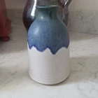 Beautiful blue drip glaze on this studio pottery handmade vase. Please see photos as they are part of the description. There is one small area on the lip that has a bit of glaze absent. See final photo.