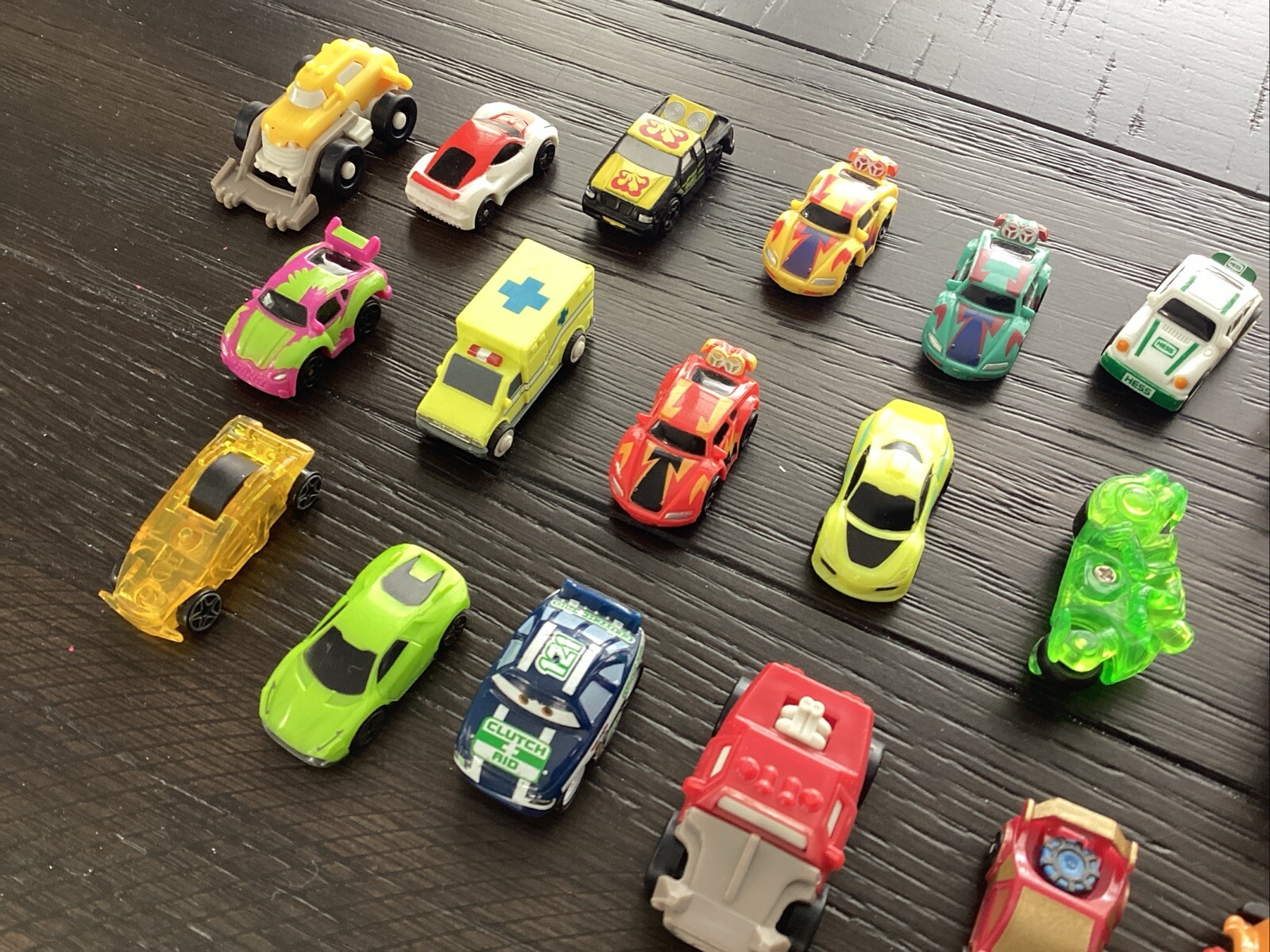 The product is a lot of 25+ vintage to now miniature toy cars, trucks and trains. Mixed brands including Hasbro. For collections or play! Please see photos to supplement this description. Ruler indicates size. I am happy to combine shipping so please see my other listings (including many vintage and collectible items this week!!). Thanks and good luck!!