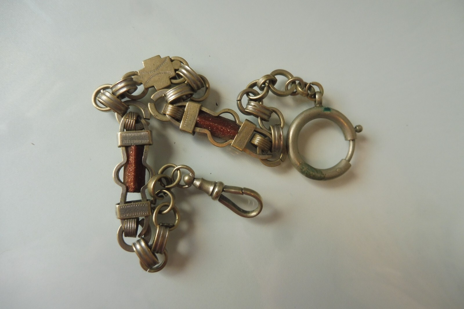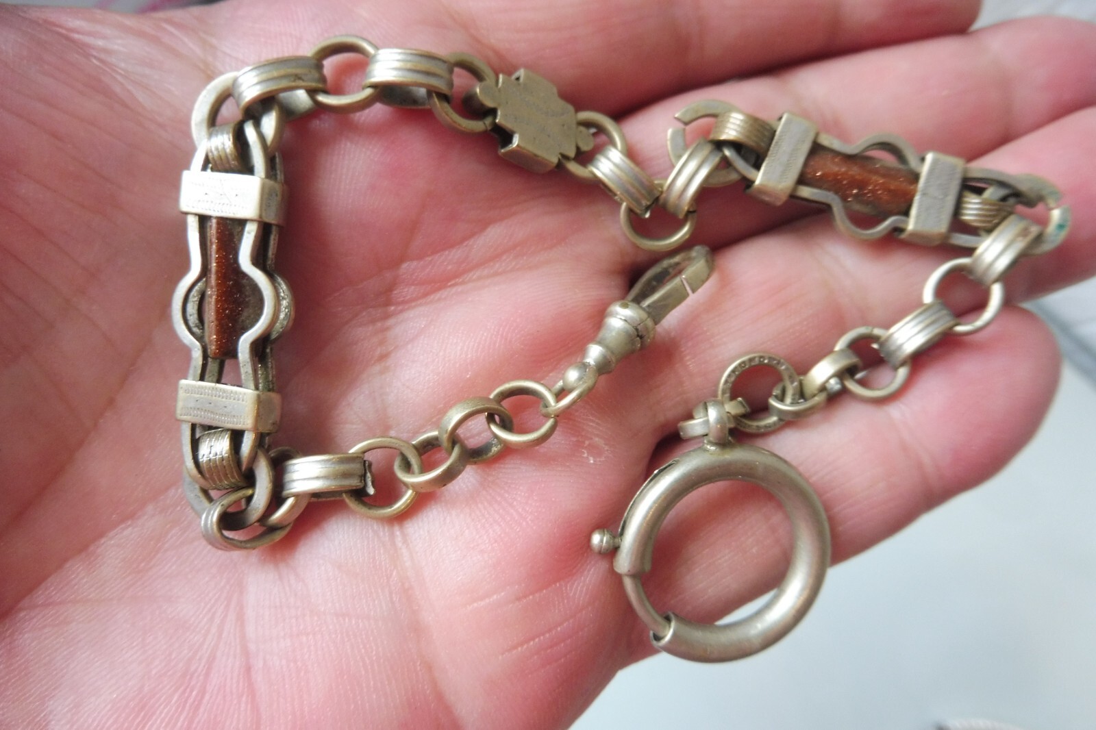 This vintage watch chain is absolutely stunning! The intricate metalwork and two embedded stones give it a unique, elegant charm. Despite its age, it's in great condition and adds a touch of old-world sophistication to any pocket watch. The craftsmanship is impressive, and the details make it a true collector's piece. Perfect for anyone who loves antique accessories with character!