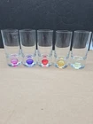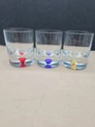 The Vintage Bar Glasss set includes eight glasses, featuring Old Fashioned Glasses and shot glasses, suitable for all occasions. Very nice vintage set of harlequin barware glasses. 5 shot glasses 3 tumblers. Each has a colored drop of glass in base. Great condition. There are some water marks. Pink shot glass has some scratches. The tumblers measure approx. 4" tall x 3" diameter, shot glasses measure approx. 4" tall x 1.75" diameter.