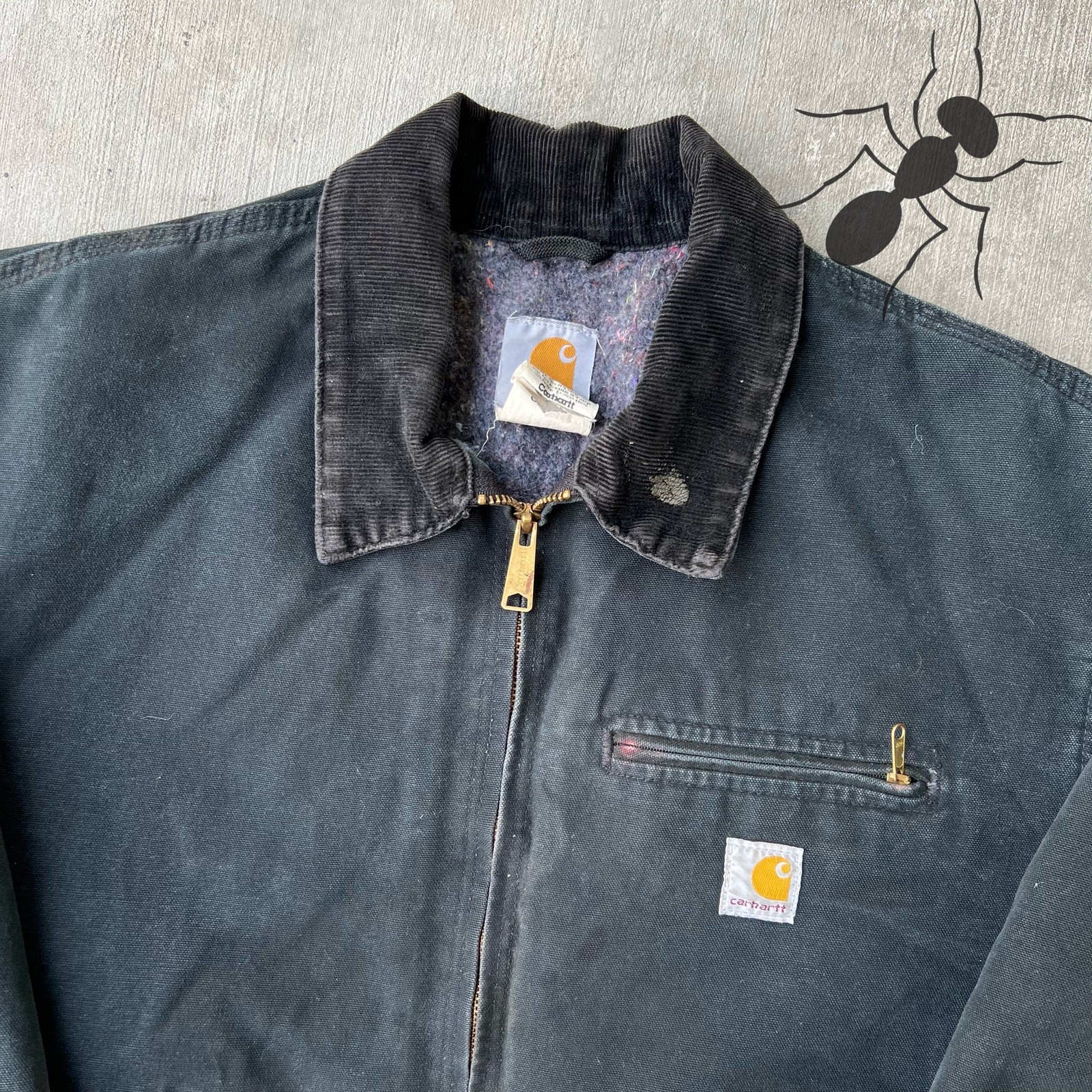 Vintage y2k J01 BLK black carhartt detroit work wear jacket. Real nice one. Has some discoloration (fading) on the sleeves. Stain on the collar check it out in the pics please! Measures 26.5x25.5. Please check measurements before purchasing. I do my best to show any flaws in pictures. Quick shipping! Bundles encouraged! @ants_haul on Instagram.