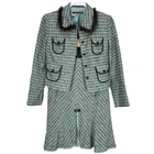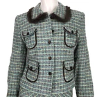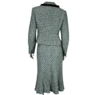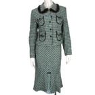 *Approx. Measurements: Jacket Chest: 34" Length: 19" Sleeve Length: 23" Skirt Waist: 29" Length: 25" *All measurements are taken with the item laying flat and then doubled, when necessary. *Size: Jacket is size 6 Petite and Skirt is size 8 Petite; See measurements to ensure a proper fit *Description: Tape Measure outfit in good pre-owned condition. Light wear with no holes or stains. *Jacket and skirt are slightly different sizes. The jacket is 6 Petite and the skirt is 8 Petite. Includes 2 pieces as shown in photos, jacket and skirt Lined Petite Jacket is button front and on the shorter side Jacket has 4 front pockets and slits on end of sleeves Jacket has faux fur trim on collar Velvet trim on both Back center zipper on skirt Acrylic *If you are unsure of sizing, select an item of yours that fits you the way you like. Measure your item and compare it to the measurements I have given above. **All clothing items are part of a promotion that includes FREE shipping when you buy 3 or more items. Add the items to your cart and when you checkout the free shipping should be automatically added. If you have any problems just message me and I will try to resolve the problem. B57
