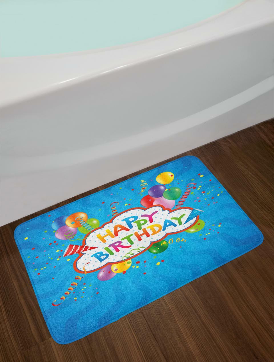 Retro Birthday Bath Mat Bathroom Decor Plush Non-Slip Mat 29.5" X 17.5" Decorative bath mat with soft plush surface with anti - slip backing. Measurements: 29.5 INCHES WIDE X 17.5 INCHES LONG. This mat is very comfortable with it's soft plush surface. It has anti slip backing which is durable and long lasting. Backing will not harm your flooring. Water resistent and dries FAST. No shedding. Ideal accent item for anywhere you need a cozy step. Ideal for kitchen, bathroom, vanity, master bathroom, kids bathroom, guest suite, laundry room, spa, vacation home, hotel bathroom. These unique designs match well with various color palettes of towels, rugs, shower curtains and any other bathroom accessories. It’s a quick and luxurious way to refresh and completely change the appearance of a room without a big expense. Made from %100 polyester high quality and environmentally friendly materials. No chemicals used, No dye substance harming the health of you or your family. A perfect gift idea for your mom, dad, sister, brother, grandma, wife, husband and all other beloved ones with thousands of surprising designs. You can find a theme for everybody and every interest in our Ambesonne Collection. Colors won't fade thanks to new digital printing methods. Customized, personalized products are very popular. As manufacturers of digital printed home textiles, we follow current trends and bring you the latest home fashion. Either a gift to your family or friend, relative or boyfriend girlfriend, or to yourself, the item should be interesting and authentic. Men, women, kids, teens, boys or girls everybody will love this shower curtain. CARE INSTRUCTIONS: Machine wash on cold delicate cycle with mild detergent and water; DO NOT bleach. DO NOT place mat on a already wet surface. The digital images we display have the most accurate color possible, however due to differences in computer monitors, we cannot be responsible for variations in color between the actual product and your screen. Proudly designed & printed in the USA.