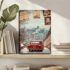 Vintage-Inspired Red Wall Art Canvas Unframed/Framed