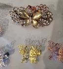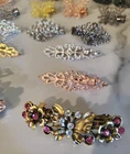 This is a lot of 18 ornate hair accessories, including barrettes and hair clips, with a vintage-inspired aesthetic. The pieces feature delicate filigree metalwork and are embellished with rhinestones, crystals, and faux pearls. Features: Quantity: 18 pieces total, as pictured. Designs: A variety of filigree patterns, including flowers, butterflies, and intricate scrollwork. Embellishments: Clear and colored rhinestones, crystals, and faux pearls. Finishes: A mix of metal tones including rose gold, gold, silver, and black. Style: Perfect for adding a decorative touch to formal hairstyles for events like weddings, proms, or parties, and also suitable for everyday wear. The lot includes a mix of sizes and styles to offer a versatile collection. The items are in good condition, suitable for immediate use or for a reseller.
