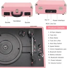 【3 Speed Record Player】Play all your favorite records with ease on record player. Features include three-speed playback (33/45/78 RPM) to accommodate vinyl records. The RCA output allows you to connect to a variety of sound systems. Enjoy your vinyl collection like never before with the smooth and seamless playback of our record player. 【Wireless Bluetooth】Stream your music wirelessly with our record player's Bluetooth capability. With the ability to connect to your smartphone, tablet, or any other Bluetooth-enabled device, you can enjoy all your favorite tunes with the touch of a button. With high-quality built-in stereo speakers, you can enjoy powerful sound outside. 【Built in Battery & Portable Design】With built-in stereo speakers and a 1800 Mah(up to 3 hours play) long-lasting battery, you can listen to your favorite records for hours without interruption. Perfect for music lovers who value quality and portability. 【Built in Speakers】 Take your vinyl collection to new heights with our record player's built-in stereo speakers. No need for external sound systems, this turntable delivers powerful and clear audio right out of the suitcase. With Product Description