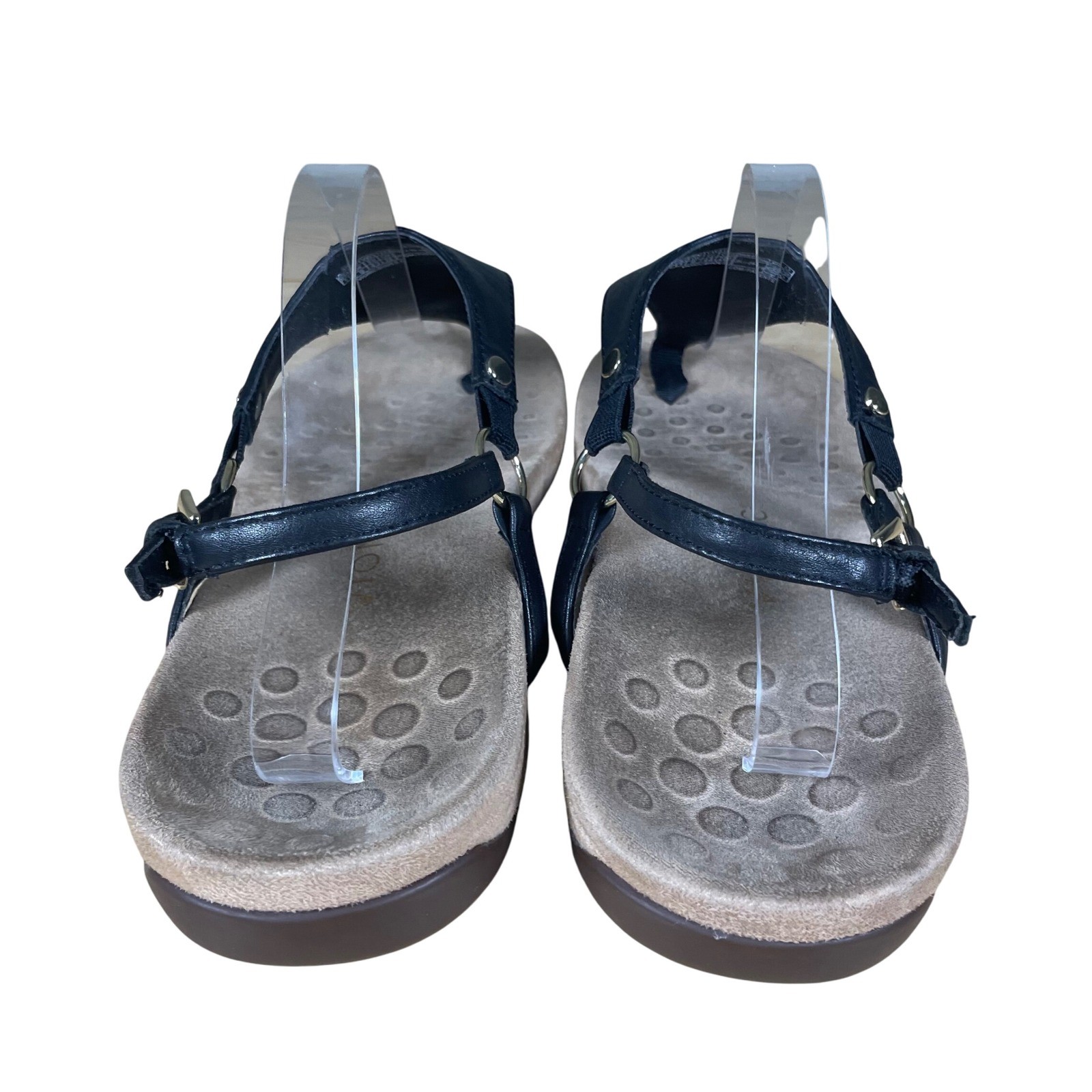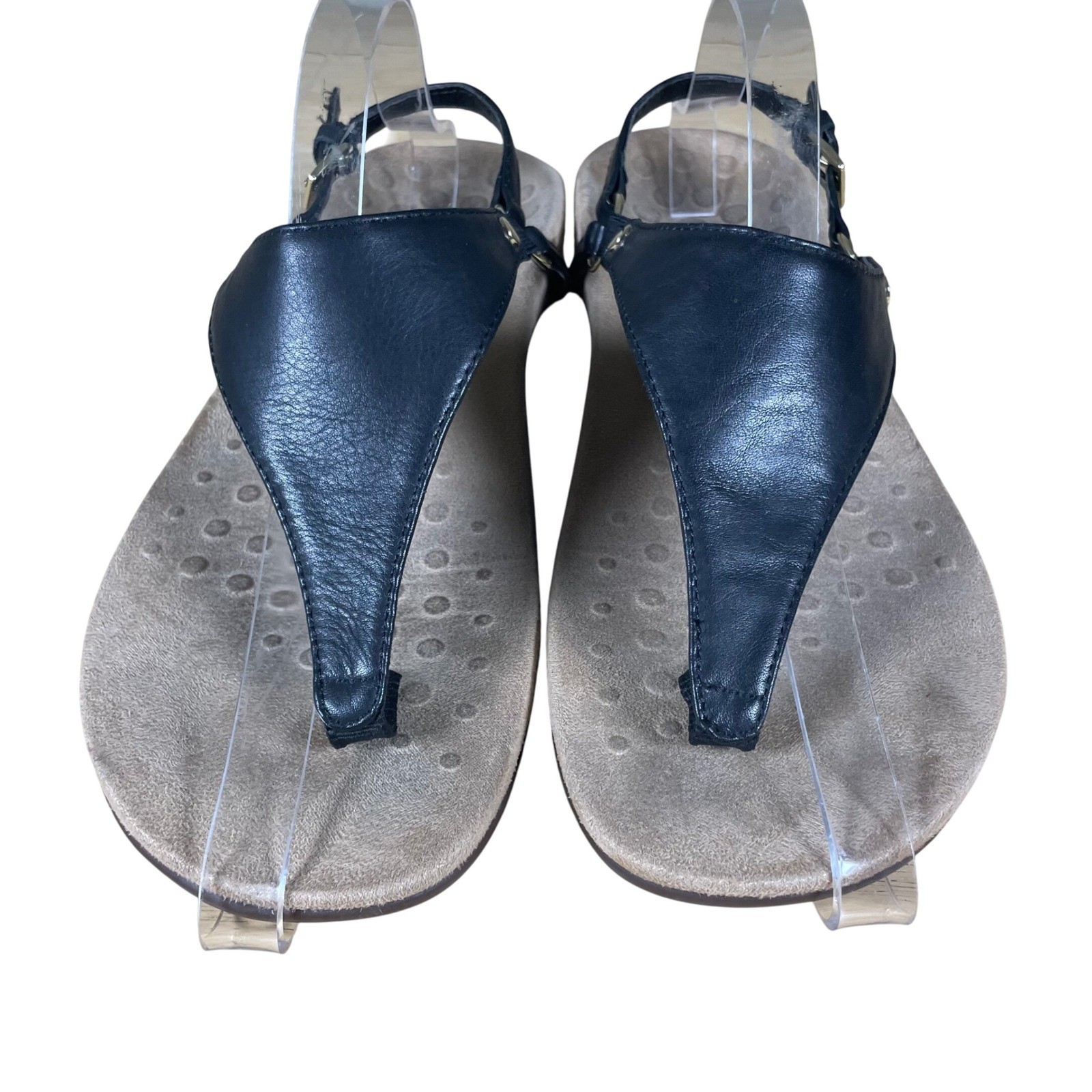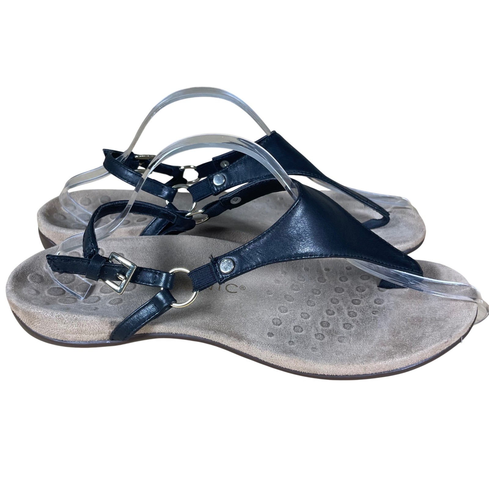 Vionic Kirra thong sandals in black leather. Designed with comfort in mind, these sandals feature adjustable ankle straps with buckle closures and a supportive footbed with signature Vionic technology. The elegant thong design is accented with subtle metallic hardware. Perfect for everyday wear, travel, or a casual outing. Keywords: Vionic, thong, sandals, black, leather, comfort, orthotic, supportive, adjustable, buckle, womens, footwear, casual, travel • MEASUREMENTS ARE PROVIDED IN PICTURES • FAST DAILY SHIPPING • 5 STAR SELLER • 20%OFF BUNDLES (2 or more) • Over 1,500+ items in stock & New Arrivals Daily