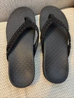 Excellent condition. Elevate your summer style with these black studded Vionic Tasha flip flops. The sandals feature a comfortable suede upper material and a supportive footbed that will keep you feeling great all day long. The stylish accents of the studs add a touch of glamour to the sandals, perfect for any summer occasion. These Vionic Tasha sandals are perfect for any woman looking for both style and comfort. The sandals come in a women's size 11, with UK and EU sizes also available. The flip flop style is perfect for a casual day at the beach or a stroll around town. Add these stylish sandals to your summer wardrobe and step out in confidence and style.