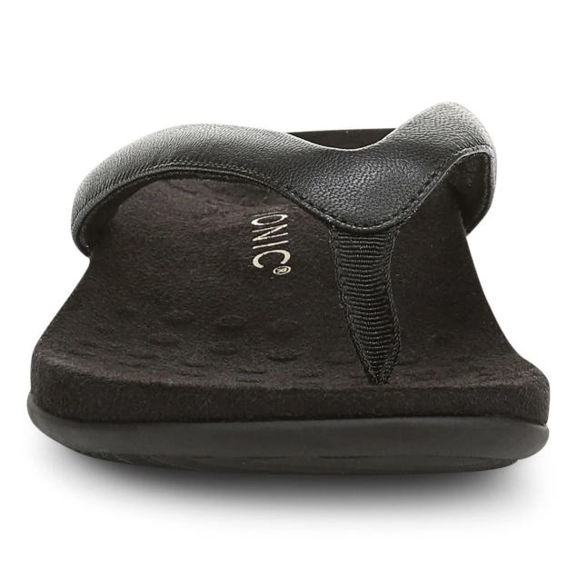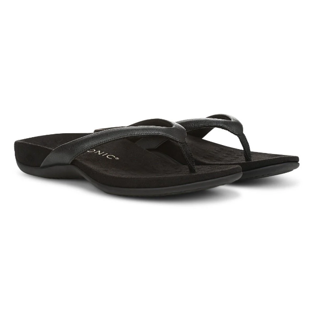Description The essential flip flop—seriously upgraded—with premium straps and our best-selling contoured footbed for all-day, walkable wear. Details Leather upper with microfiber-covered footbed. Lightweight, flexible EVA midsole absorbs shock, reducing stress on feet, ankles, and knees. Durable rubber outsole with a patterned tread provides traction on a variety of surfaces. Vionic Technology is biomechanically designed to hug your arches and support your feet in comfort. Vionic sandals' built-in orthotic is shown to be effective in helping to treat heel pain (plantar fasciitis).* Received APMA Seal of Acceptance Fit & Care Available in women's whole and half sizes in two widths. Medium width, sizes 5, 6-10, 11, 12. Wide width, sizes 6-10, 11, 12. For the greatest comfort, we recommend wearing your new Vionic footwear for just a few hours for the first few days to allow your feet to adjust to the new level of orthotic comfort and support. Within one to two weeks you should find the product completely comfortable and supportive. To clean, wipe with damp cloth and air dry under indirect sunlight only. Do not submerge in water or use solvents to clean products