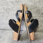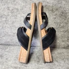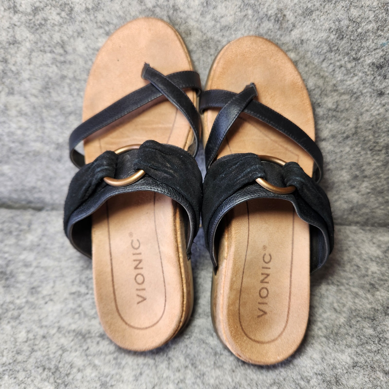 $ 13.2Vionic Atlantic Anitra Black Leather Wedge Sandals Women's Size 11 EU 43 Cork Sole Thong