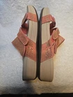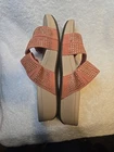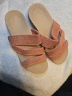 Vionic Women's Pacific Alexis Platform Sandal Size US 10/EURO 41 Color: Peach Gently worn in Good Pre-owned Condition . One of the shoes have a light glue Mark see photos. Suede upper covered with rhinestone detail; three adjustable hook-and-loop straps. EVA footbed. Durable Rubber Outsole. Approximately 1.5"H platform heel. YOUR NEW FAVORITE PLATFORM SANDALS: Alexis puts the fun in functional in these mid-height platform wedge slides. Three adjustable suede straps covered in rhinestones extend all the way to the sole for an extra pop. EVERYDAY SUPPORT: Unique THREE-ZONE COMFORT technology is concealed into all Vionic shoes, delivering essential support that hugs your foot's natural curves in all of our casual, dress, active, and slipper styles. Experience the Vionic difference: on-trend fashion, unmatched fit, and feel-great wellness from the ground up BIN A(25)