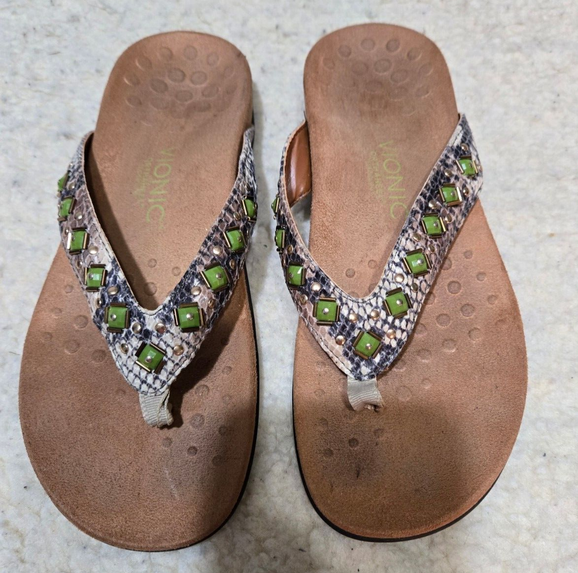 Vionic Floriana Flip Flops (inv24) Snake Skin with Green Jewels Size 9 Used but very well cared for! Overall in really good condition! From a smoke free home.