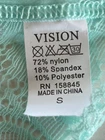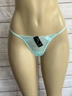 This Vision Intimates women's teal lace thong in size S features a floral pattern and is made of lightweight nylon material. It is designed as a thong/string style panty with lace fabric, emphasizing the waist area. The item is brand new with tags (NWT) and is ideal for women seeking a vision of elegance and comfort in their intimate wear.