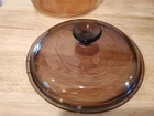 Vision Ware Corning Sauce Pan Pot 2.5 L With Lid Amber Cookware USA, pot has a small smooth chips on top edge beside of handle, shown in pictures, please view photos for details, price discounted accordingly.