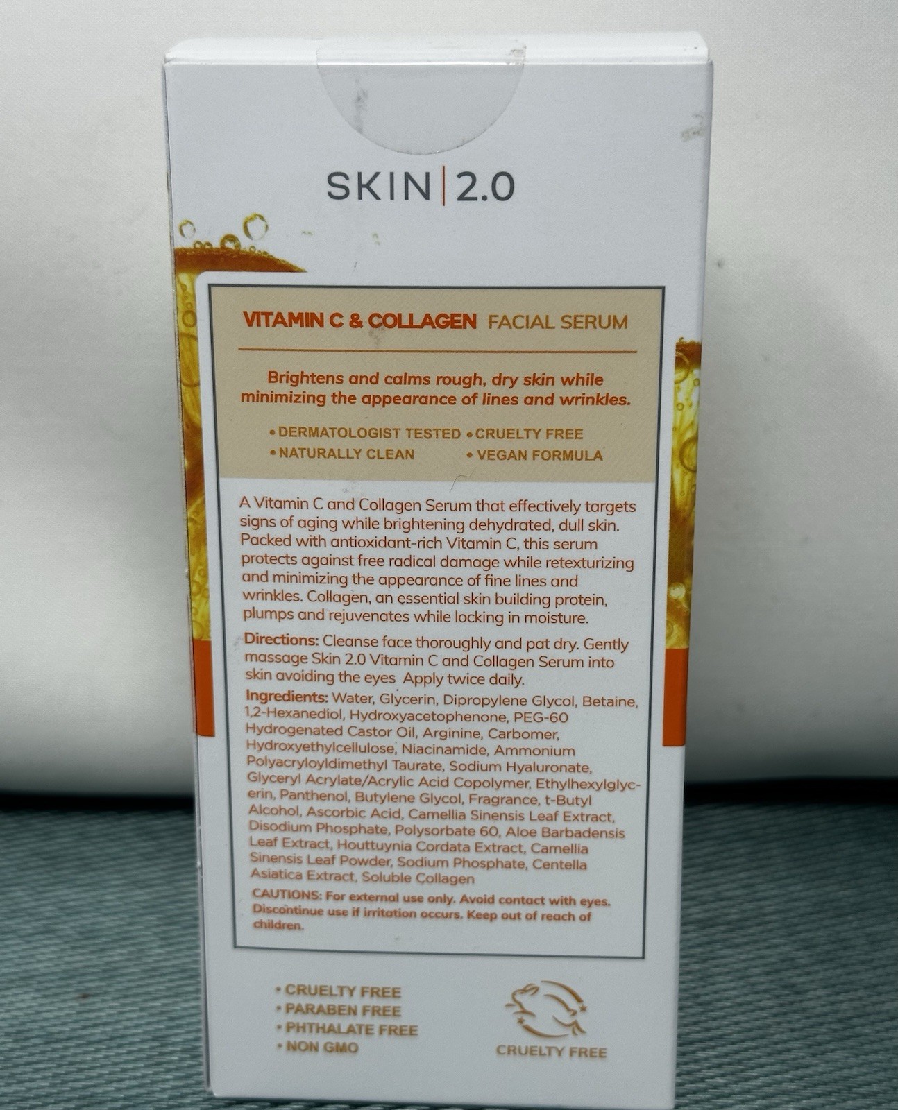 SKIN 2.0 VITAMIN C & COLLAGEN FACIAL SERUM BRIGHTENS & SMOOTHS SKIN 1.69 FL OZ. Sealed