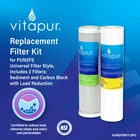 Keep your under sink PUN2FS water filtration system producing safer, better-tasting drinking water with the VUN2FSKIT-2PC filter replacements. This kit includes one universal 5 micron sediment filter and one universal 5 micron carbon block filter that are NSF certified to reduce particulates, such as sand, rust and dirt, as well as pollutants including lead and chlorine taste and odor. Replace the filters every six months, so every sip is always refreshing. Replacement kit includes 1 sediment filter and 1 carbon block filter; for use with the Dual Stage Under Sink Universal Water Filtration System PUN2FS NSF/ANSI Standard 42, 53 and CSA B483.1 certified to reduce particulates such as sand, rust and dirt, as well as reducing contaminants including lead and chlorine taste and odor Compatible with most other universal water filtration systems To maintain optimal system performance, replace the filters every 6 months