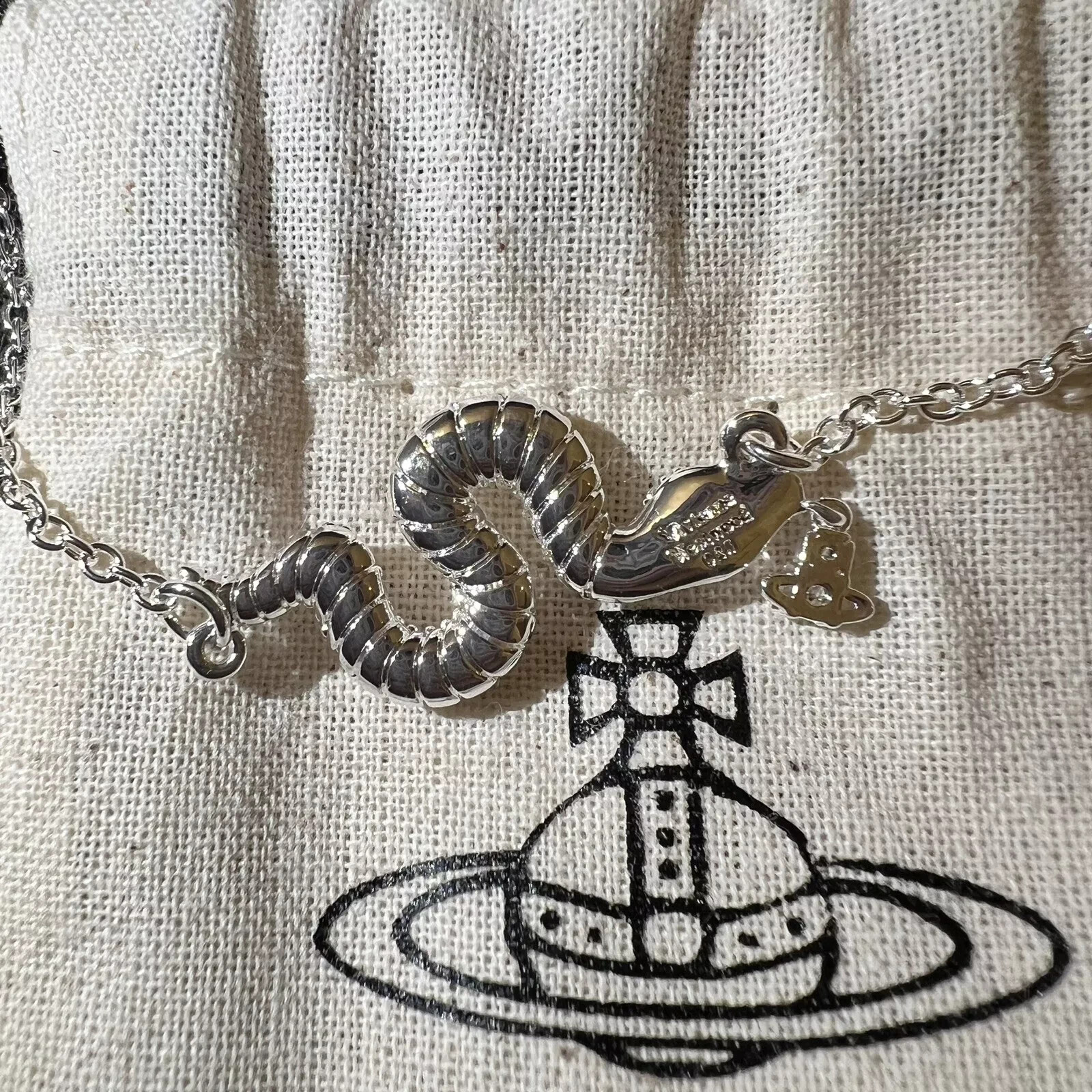 Metal:SilverType:NecklaceBrand:Vivienne Westwoodgtin13:Does not applyMain Stone:CrystalPendant/Locket Type:CharmMain Stone Shape:snakeStyle:ChainMaterial:GemstoneMPN:White Excellent White 55f5cabd-0a41-Color:WhiteMain Stone Color:WhiteUPC:Does not applyCut Grade:ExcellentMain Stone Length:15 inTheme:Anime, Art, Beauty, Cartoon, TV & Movie Characters, Fairytale & F