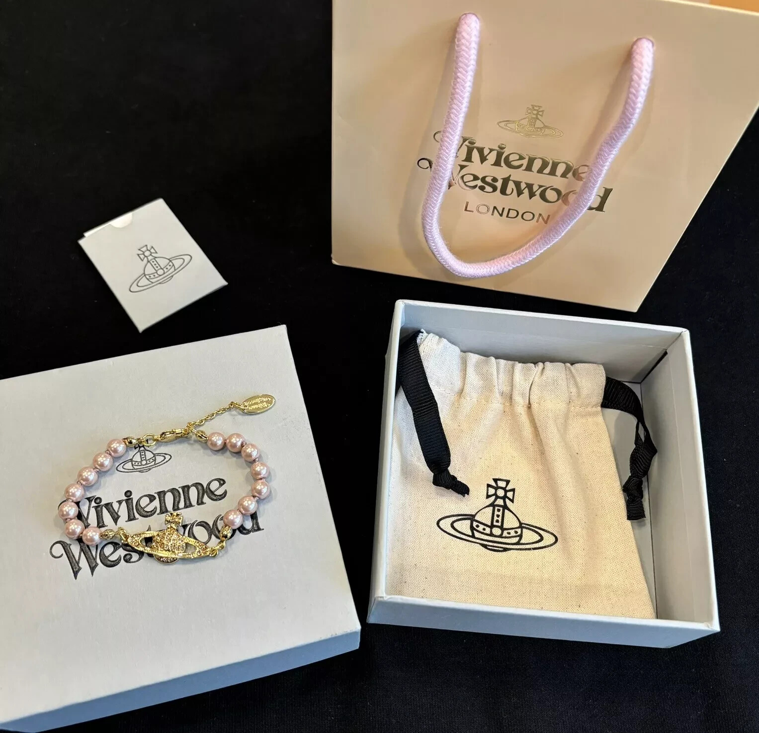 Dimensions: Bracelet length is around 18cm, pendant is around 2cm Includes dust bag, box and card It’s ready to gift condition