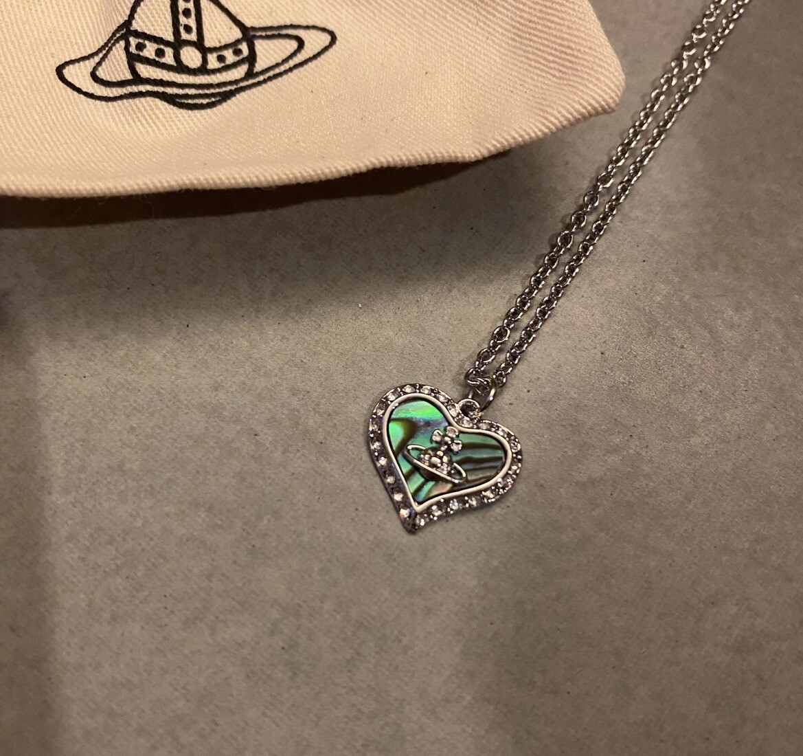 Vivienne westwood White Mother Pearl heart with Purple Crystal necklace. Dimensions: necklace length is around 44cm, pendant is around 1.4cm With dust bag in pictures *This is natural mother pearl, each of this necklace might be a little bit diffrent from the pics*