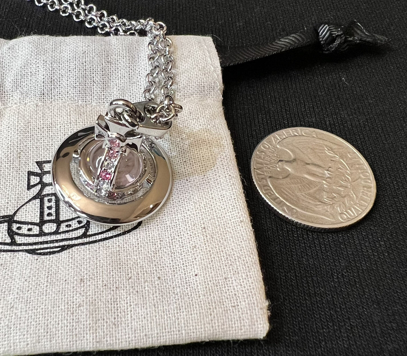Vivienne Westwood Nana Small Orb Necklace in Silver Tone with Pink Crystal #279
