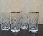 Vnt Russian Cut Crystal Glasses with Ornate Silver-Tone Metal Holders – Set of 4 Stunning pair of Russian cut crystal glasses featuring intricately detailed silver-tone metal holders. These elegant pieces combine old-world charm with functionality, perfect for serving hot tea or coffee. The holder has a stamp with Russian abbreviation which means in the translation - copper-nickel-zinc. An alloy of these three metal is called nickel silver ((from the German neusilber -"new silver") 4" tall and 3" in diameter High-quality cut crystal with gold rim 5.25" tall and 2.5" wide Some losses of gold on the glass rim
