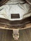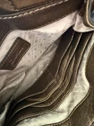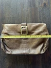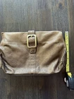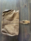This vintage Cole Haan clutch features a metallic bronze slouchy leather design with chunky hardware accents, giving it an edgy and early 2000s aesthetic. Great magnetic closure for fast open/close Shall size suitable for travel or casual wear. The interior is lined in fabric With its retro Y2k vibe and quality craftsmanship, this Cole Haan handbag is a stylish and practical accessory for any fashion lover