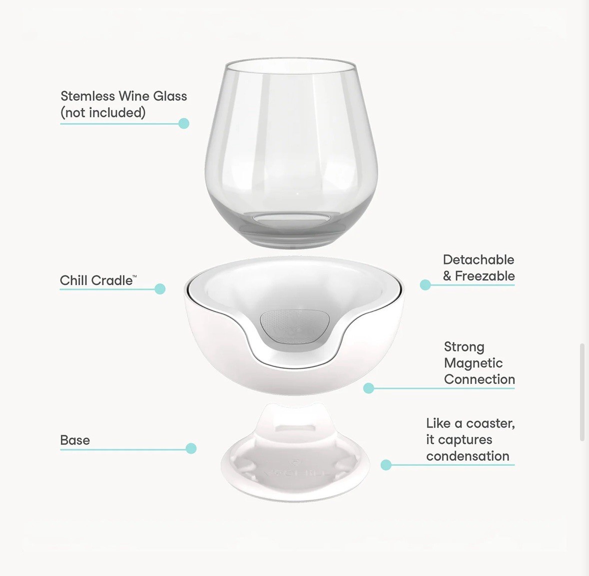 VoChill Personal Wine Chiller, Wine Accessory For Stemless Glasses Graphite New in box
