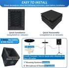 TroyStudio Portable Vocal Booth, Large Foldable Microphone Isolation Shield, Music Recording Studio Sound Echo Absorbing Box, Desk & Stand Use Reflection Filter with Thickened Dense Acoustic Foam 【BASIC INFO】: Inside size after setup: 8'' (L) X 10'' (W) X 12'' (H), large space for various studio equipment of any sizes; Exterior size: 12'' (L) X 12'' (W) X 16'' (H); Folded size: 12'' (L) X 12'' (W) X 6'' (H); Weight: 2 lbs; Equipped with holes for audio cables and mic stands【PORTABLE & FOLDABLE & SPACE-SAVING】: This studio booth is portable and foldable. It's light weight and ready-to-go. Just put in your suitcase and record wherever you are 【NOTABLE SOUND ABSORPTION & RECORDING CLARITY IMPROVEMENT】All inside surfaces of this voiceover box cube are treated with TroyStudio 2" thick dense egg-crate foam for optimal acoustical treatment. It effectively eliminates echoes and reflections while reducing ambient noise. As a result, recordings are well protected from room reverb by 92.7%, producing a dry, clear sound that greatly enhances recording clarity. If you don't have a professional recording studio, it is an excellent alternative 【REDESIGNED STRENGTHENED STRUCTURE】This new-version portable studio includes 5 pieces of high-density, 2-inch thick sound dampening foam that will not sag over time; A specially designed backing panel adds significant support to prevent the entire system from becoming flimsy; Additionally, if you want it to be more compact, you can use the elastic bands included in the felt shield case to further secure the foam in place 【BROAD COMPATIBILITY】: Both stand mount & table use available. Compatible with all the microphones, such as vocal microphone, condenser microphone, usb mic, phone, recorder pen, condenser hanging mic. Work with various mic stands, like desktop mic stand, boom arm stand, ceiling holder stand and floor stand. Please note that this mini recording booth can only be mounted on stands with a diameter smaller than 0.86 inches 【ENDLESS APPLICATION】: Ideal for versatile recording needs including podcasting, audiobooks, vocal/ musical, voice over work, instruments, percussion... Perfect for home studio, music studio, office, apartment, podcast studio, basement room, closet booth, bedroom and more. 【QUICK INSTALLATION】: Setup can be effortlessly completed within 1 minute, and disassembly takes only 20 seconds. NOTE: Please read the instruction before installation, since wrong setup steps may lead to unstable issues