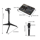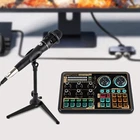 Voice Changer Sound Card with Multiple Sound Effects and LED Light, Sound Board Description A good voice changer sound card can improve the quality of your live stream and attract more viewers. This sound card not only meets all your sound needs but also is highly compatible and easy to connect. The high-quality microphone and headset can provide you with clearer sound reception, while the bracket inside the package can fix and place the microphone more stable. It will be a powerful assistant for your live broadcast! Key Features High-quality Materials: This product is made of high-quality plastic and is durable, so it can maintain practicality without frequent replacement. Atmosphere Maker: The product adds colorful, bright LED lights and the changing lights can make your music more passionate, and also increase the indoor atmosphere. Highly Multifunctional: Noise Reduction/Dodge/Muffled/Play-In functions can meet your basic live streaming needs. By reducing environmental noise due to the quad-core DSP audio chip, your voice will be highlighted. Multiple Sound Effects: This product has 13 live effects, and voice change effects, helping you activate the atmosphere of the live room. It also has a reverb volume knob for a richer range of reverb options. Convenient Connection: It supports Bluetooth-compatible connection. You can transfer accompaniment music with one button through your mobile phone without connecting various data cables to help you get rid of the bondage of wires. Large Battery Capacity: The built-in 1200mAh rechargeable battery can last for 5 hours, providing more long-term support for your live broadcast. Adjustable Pitch: This product can independently adjust treble, midrange, and bass to meet your various needs. The treble makes your voice full, clear, and penetrating; the midrange makes your voice line more stable; the bass makes your voice more magnetic. Multi-Device Support: This product is compatible with dual cell phone live, cell phone computer synchronous live, one machine live, computer accompaniment cell phone live, and instrument input cell phone live. And it supports two microphones connected at the same time. Details Round Edge: The smooth edges can prevent your skin from being scratched during use so as to better protect your safety. Clear Buttons: Each operation button is marked with the corresponding function, making the operation much easier. Adjustable Stand: The microphone clip at the top of the stand can be rotated to adjust the angle at will. And it has foldable legs, which makes it easier to store. Its triangle shape produces shockproof and strong support when using the microphone. Application This product can be used for DJ, music studio recording, online karaoke, podcasting, singing, karaoke, live broadcast, online chat, etc. It is suitable for mobile phones and computers and supports Windows/MAC/Android/IOS systems. Specification Model: SK600 Color: Black Material: Plastic Light: LED Assembly Required: No Interface: Type-C OTG Signal Noise Ratio: ≥85dB Adjustable Pitch: Treble, Midrange, and Bass Bluetooth Distance: 5-8M/16.4-26.25ft Frequency Response Range: 60Hz-15KHz Output Power: 600mW Whole Machine Power: 5W Rated Input: DC 5V/1A Product Power Consumption: 230mAh Distortion: 0.1% ( Recording ), 0.005% ( Playback ) Chip: Quad-core DSP Audio Chip Battery Model: 18650 Lithium Battery (1200mAh, Included) Applicable Microphones: Microphones with 3.5mm/0.14in Connector Function: 5 Preset Scene Modes + 13 Live Effects + Variable Electric Sound Effect + Eliminate Music Acoustic Gross Weight: 0.9kg/ 1.98 lbs Net Weight: 0.8kg/ 1.76 lbs Microphone Size (φ*H): 5*20cm/2*7.87in Microphone Bottom Diameter: 2cm/0.8in Microphone Top Diameter: 3.5cm/1.38in Stand Size (W*H): 21*18cm/8.3*7.1in Product Size: 20*13*5 cm/ 7.87*5.12*1.97 in Package Size: 25*20*12 cm/9.84*7.87*4.72 in Package Included 1 * Voice Changer Sound Card 1 * Microphone 1 * Wired Earphone 1 * Microphone Stand 1 * Microphone Cable 1 * USB Charging Cable 2 * 3.5mm Audio Cables 1 * English Manual Notes This product is not compatible with an XLR microphone, and does not support AC power. It is suitable for streaming and podcasting, but the sound quality may not be as good as a professional DJ mixer. Please note that the sound effects board must be connected to headphones in order to hear sound effects and vocals. If your phone does not have a 3.5mm jack, you will need an OTG adapter (not included). Please avoid using the sound effects board for live streaming during charging, as it can easily generate noise. However, you can use a power bank when to live, it is not easy to produce current and other noise. It works well on PC, but we can't ensure it's 100% compatible through digital connection as IOS and Android systems are constantly updated. This product is suitable for microphones with a 3.5mm connector, but not for 48-volt microphones. Please read the operating manual completely before use. And pay particular attention to the safety instructions included. Please allow the slight color difference caused by the shooting light and the 1-3 cm error due to manual measurement, and make sure you do not mind before ordering. Payment Delivery details Terms of sales About us Contact us Payment We accept ebay payment 。 Fees such as import duties, taxes are not included in the item price or shipping costs. These charges are the buyer's responsibility. Delivery details Shipping: 2-9 working days to: USA Terms of sales We maintain high standards of excellence and strive for hundred percent customer satisfaction. Feedback is very important to us. We hope that you contact us immediately before you give neutral or negative feedback, so that we can address your concerns. It is impossible to address issues if we do not know about them! About us Your satis faction is our ultimate goal. We work hard to earn your trust and future business. Our certified technicians have tested each item before shipping. The 