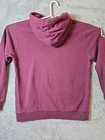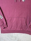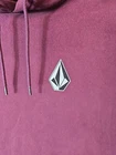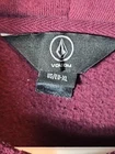 This Volcom hoodie is a men's XL size in maroon, designed for skateboarding and casual wear. The hoodie features a solid pattern with long sleeves and a hooded neckline, perfect for the fall and winter seasons. Made of a comfortable blend of polyester and cotton fleece material, it has a logo accent on the front and convenient pockets for practicality. The athletic fit and 90s-inspired outdoor theme make it a stylish and functional choice for skateboarders and those looking for a cozy, on-trend sweater.