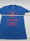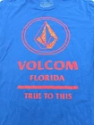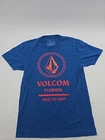This is a men's Volcom T-Shirt in size small, featuring a blue color with a graphic print related to Florida. It has a crew neck and short sleeves, made of cotton material. The shirt is designed with a casual style suitable for everyday wear. Made in Mexico. Check Pictures for flaws and measurements