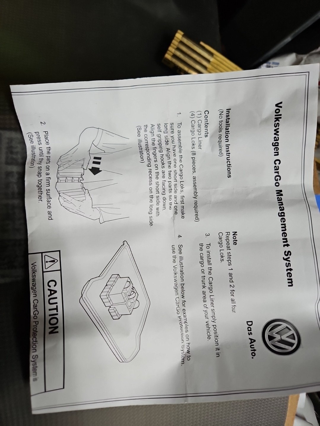 Keep your Volkswagen's trunk organized and protected with the genuine OEM VW CarGo Management System. This set includes 8 black velcro blocks designed for easy installation and durable, adjustable placement on the rear of your vehicle. The insert attachment type ensures a snug fit, providing a sleek and tidy storage solution for your cargo. These are NEW, never used. Package is open. Contains 8 blocks only. They connect with velcro to carpet in cargo area.