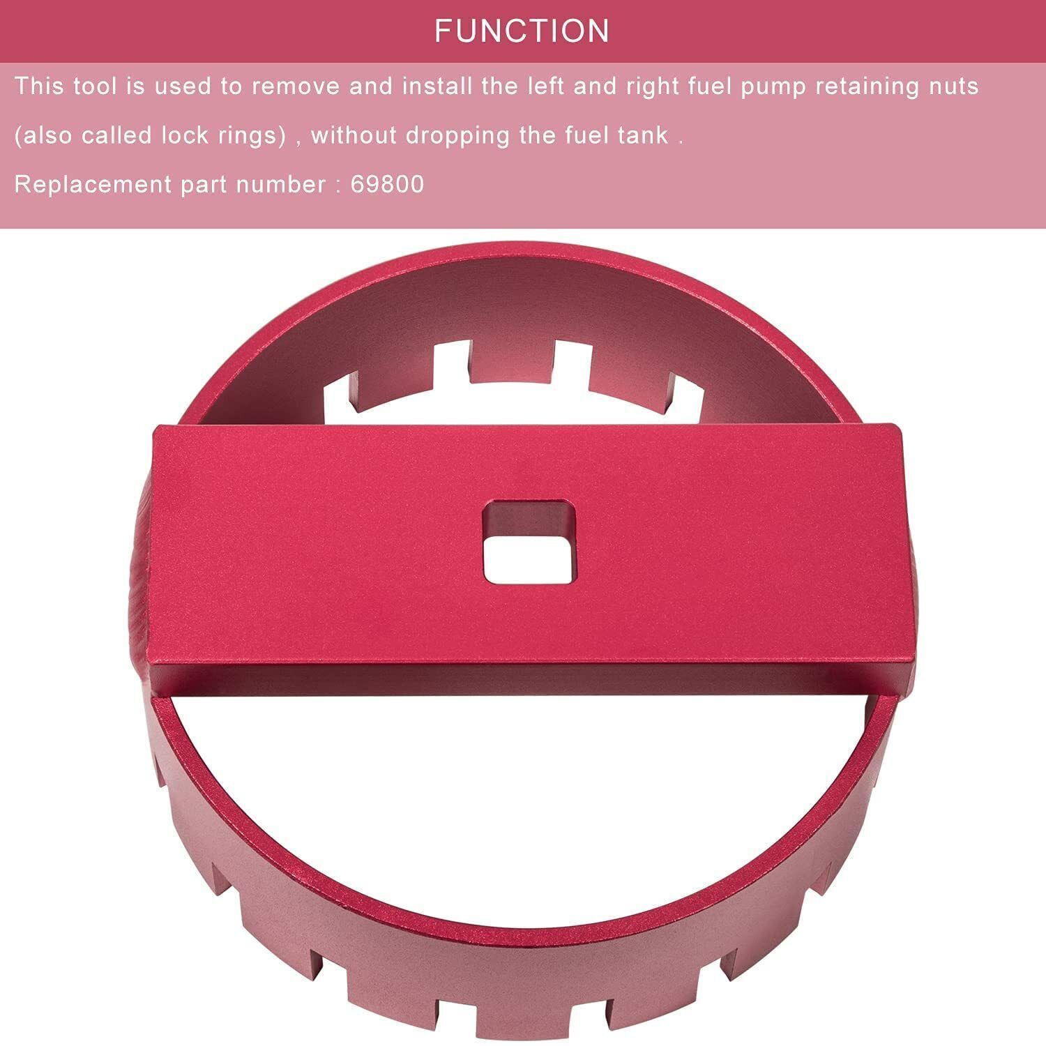 " Fuel Pump Socket 69800 fit for Volvo S60 S80 V70 XC70 XC90 Lock Ring Removal Tool Material Made of high standard Aluminum with red finish, with great strength and durability, nice rust-resistant and anti- corrosion,no deformation and no fade. Function Used to remove and install the left and right fuel pump retaining nuts (also called lock rings) on many late model Volvo's without dropping the fuel tank. Nice Design Teeth design perfectly matches with the plastic lock ring in order to protect the lock ring from damage when installing or removing.The leverage provided helps you easily and promptly keep the retaining nuts locked in place or removed. Specifications: Type: Adjustable Wrench Color: Red Set or Single Item: Single Item Fitment Type: Direct Replacement Fitment: For 2001-2009 for Volvo S60 For 1999-2006 for Volvo S80 For 2001-2007 for Volvo V70 For 2003-2007 for Volvo XC70 For 2003-2014 for Volvo XC90 Package Includes: 1 * Fuel Pump Socket (Same as picture show) Notes: Please allow 1-3mm differs due to manual measurement. Due to the different display and different light, the picture may not reflect the actual color of the item. "
