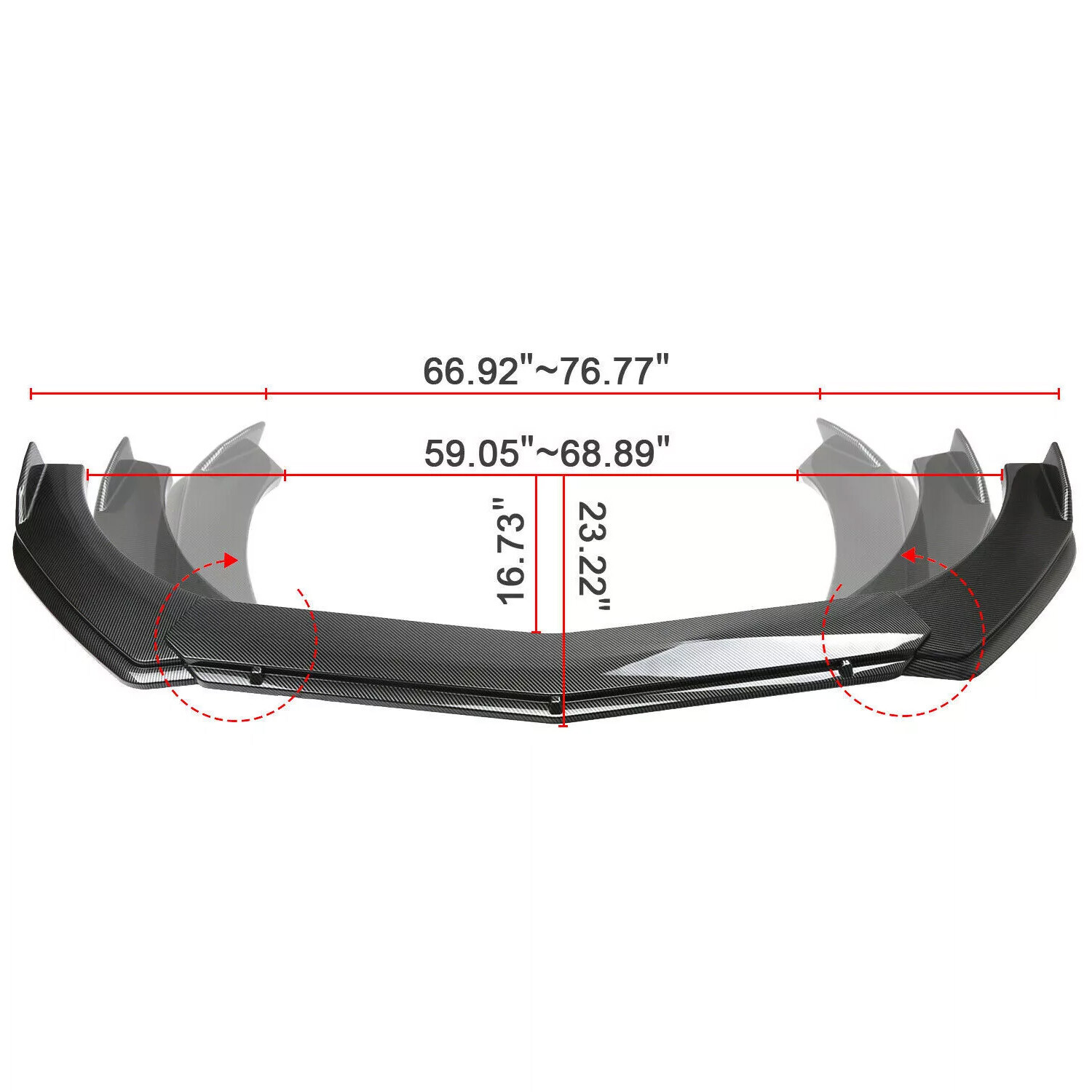 Package Included 1:Front Lip Chin Bumper Specification: Condition: 100% Brand New Type: Front Lip Chin Bumper Body Kits Material: ABS Color: Carbon Fiber Placement on Vehicle: Front ; Lower Features: Give your vehicles sporty appearance Protect Your Bumper From Scratching Strict quality control standards to Build and test. Come With Screws, Pre-drilled holes for quick installation Professional Installation Is Highly Recommended. Fit for Universal width 75". Package Included 2:Side Skirt ( 2pcs ) Specification: Condition: 100% Brand New and High Quality Type: Car Body Side Skirts Material: ABS Color: Carbon Fiber Side Skirt Size:2.2M/86.6inch Position: Side Skirt Extension Features: Universal modified side skirt for car sedan. While the side skirts don't affect the front ground clearance too much, it enhances the side extension of the in a very pure and exciting way. A Perfect Aftermarket Replacement. Professional Installation Is Highly Recommended. Package Included 3:Rear Lip ( 2pcs ) Specification: Condition: 100% Brand New and High Quality Type: Car Body Rear Lip Material: ABS Color: Carbon Fiber Rear Lip Size:17.32 in x 4.33 in Placement on Vehicle: Left, Right Package Included 4: Strut Rods(2pcs) Product Description This listing features for one pair (2 pieces) of blue front bumper lip splitter rod strut tie bar. These front bumper lip support rods are used to reinforce your front splitter or rear diffuser. It is universal fit for any cars, SUVs, trucks. You can extend its length from 8 inches to 11 inches. Specification * One pair (2 pieces) front bumper lip splitter rod strut tie bar * Material: Made with premium quality aluminum alloy chrome finish * The length can be adjustable from 8" to 11" * These include fully articulated top and bottom joins which allow them to be installed at any angle * It will support your vehicle bumper lip splitter stronger with and awesome eye-catching look We have Black, Red, Silver and Blue color in stock. Pls contact us if you want other color Package Includes: 4pcs/set Front Lip Chin Bumper Body Kits 2x Side Skirts 2x Rear Lip 2 x Adjustable Strut Rods Screws kit