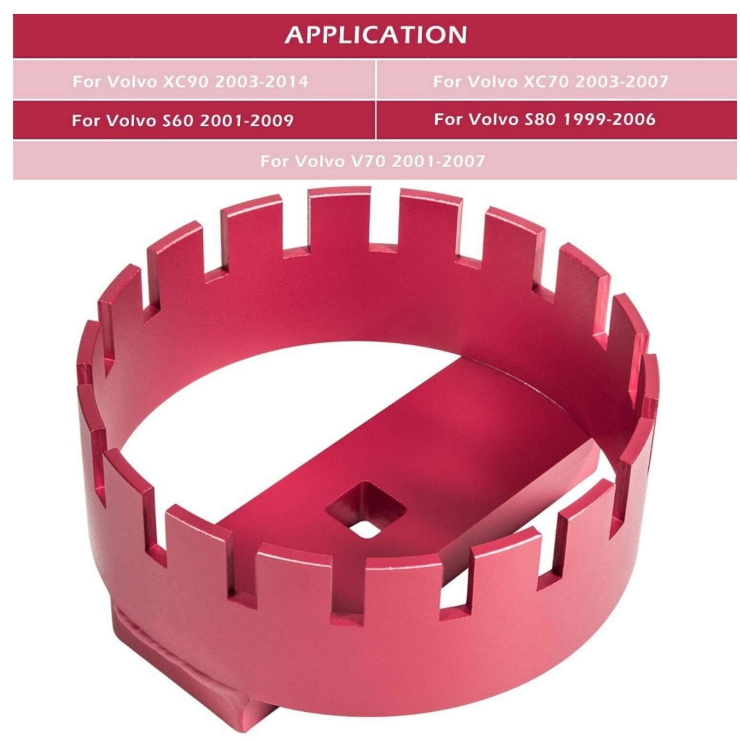 " Fuel Pump Socket 69800 fit for Volvo S60 S80 V70 XC70 XC90 Lock Ring Removal Tool Material Made of high standard Aluminum with red finish, with great strength and durability, nice rust-resistant and anti- corrosion,no deformation and no fade. Function Used to remove and install the left and right fuel pump retaining nuts (also called lock rings) on many late model Volvo's without dropping the fuel tank. Nice Design Teeth design perfectly matches with the plastic lock ring in order to protect the lock ring from damage when installing or removing.The leverage provided helps you easily and promptly keep the retaining nuts locked in place or removed. Specifications: Type: Adjustable Wrench Color: Red Set or Single Item: Single Item Fitment Type: Direct Replacement Fitment: For 2001-2009 for Volvo S60 For 1999-2006 for Volvo S80 For 2001-2007 for Volvo V70 For 2003-2007 for Volvo XC70 For 2003-2014 for Volvo XC90 Package Includes: 1 * Fuel Pump Socket (Same as picture show) Notes: Please allow 1-3mm differs due to manual measurement. Due to the different display and different light, the picture may not reflect the actual color of the item. "