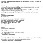 You may also like Rear Right Tail Light Lamp 63217166956 For Mini Cooper R50 R52 R53 05-2008 96.69 USD Free shipping Right Outer Trunk LED Tail Light Lamp Fit For Audi A4 2009~2012 119.69 USD Free shipping 1PC Left Driver'S Side Tail Light Cover For 06-08 Audi A6 Quattro S6 4F5 095M 66.69 USD Free shipping Left Inner Trunk LED Tail Light Lamp For AUDI A6 C6 Sedan 2009-2011# 81.69 USD Free shipping Right Tail Light Brakelight Lamp For GMC Acadia 2013-2016 #8 72.69 USD Free shipping Tail light LED Conversion Harness PNP For Silverado LTZ Sierra Denali 16-18 35.69 USD Free shipping Left Tail Light Brakelight Lamp For GMC Acadia 2013-2016 #8 72.69 USD Free shipping Left+Right Tail Light Cover For Audi A6 S6 05-08 Quattro 4F5945096M .. 119.69 USD Free shipping Pair Rear Bumper Lower Tail Light Brake Stop Lamp USA For Audi Q5 18-21 124.69 USD Free shipping Left Side Rear Bumper Fog Reflector Light 95863110510 Fits Porsche Cayenne 15~17 34.69 USD Free shipping Right Inner Trunk LED Tail Light Lamp For Audi A4 2009-2012# 79.69 USD Free shipping Right Rear Tail Fog Light Reflector 31111185 For Volvo XC90 MK1 2007-2014 #8 37.69 USD Free shipping 1x Left Rear Bumper Lower Tail Light Brake Stop Lamp For Audi Q5 US Version .. 82.69 USD Free shipping Rear High Level Black Third Stop Brake Light For Citroen C1 For Peugeot 107 31.69 USD Free shipping Black Smoked High Level Third Brake Stop Light For Mini Cooper R56 R60 06-13 28.69 USD Free shipping Red Lens High Level Brake LED Light Rear 3rd Stop For Seat Leon 5F 2011-2016 39.69 USD Free shipping All Models For Honda For Suzuki For Kawasaki For Yamaha For BMW For Polaris For CFmoto For Ducati For Benelli For Trident For Triumph For Aprilia Other part You may also like CNC Motorcycle Frame Hole Cover Guard Black Fits Yamaha T-max Tmax 530 2005-2016 14.69 USD Free shipping 1 Pair Front Bumper Fog Light Grill Cover Bezel For Audi A6 C7 2012-2014 41.69 USD Free shipping Electrolux Door Catch Lock Latch For Dometic 241234560 RV Part #8 14.69 USD Free shipping Adjustable Folding Extendable Brake Clutch Levers For Kawasaki ZX ZZR ZXR BK #3 30.69 USD Free shipping Rear Passenger Seat Pillion Fit for Sportster 72 XL 1200 V 48 XL 1200 X 16-19 77.69 USD Free shipping PRODUCT DESCRIPTION Left+Right Side Rear Bumper Reflector Light Without bulb 31656865 31656866 For Volvo XC40 18-23 Feature: 1: According to the original factory specifications,perfect match for the original car. 2: Own different test machines to design exact accurate parameter for our products.All items were tested for performance. 3: Made by high quality material, lightweight, anti-rust, colorfast and durable. 4: Aftermarket product with premium quality. 5: Stable performance, high reliability,suitable for replacing your broken one. Specifics: Condition: 100% Brand New Material: Plastic Color:show as pictures Manufacturer Part Number:31656865,31656866 Interchange Part Number:31656865,31656866 Other Part Number: 31656865,31656866 Placement on Vehicle:Rear,Left,Right Note:Without Bulb Fitment Type: Direct Replacement Fitment: For For Volvo XC40 2018-2023 Package Include: 1 Pair Rear Bumper Reflector Light(Left+Right) (show as pictures) [* Instruction is not included!] Note: 1.Please check the description or use the year/make/model check finder and replace part numbers to confirm the compatibility before purchasing. 2.Professional installation is recommended. About Us Payment Shipping Returns Contact Us About VIPIH VIPIH is one of the international leading distributors specialized in distribution of motor parts of the world's prime motorcycle part suppliers on a global scale with the full responsibility in procurement, shipping, sales and marketing and after sales service. VIPIH fulfills all needs of its clients completely and on a timely basis with the know-how it has built up since it was established and the comprehension knowledge of the sectors standards. The perfectionist approach in product quality, high service availability, strict principle of business follow-up, reliability and the good reputation which has gained strength as a result of customer satisfaction are the most striking components of VIPIH's success. VIPIH is presently capable of supplying all demands for motor parts from the petrol pump to rectifier in a wide range. Free delivery with worldwide shipping options available. If you need any further information before ordering,please get in touch with expert advice. About Item All items sold by us are being described to the best of our abilities, as accurate as possible, and with utmost conscientiousness on our part. However, to avoid any potential oversights, I respectfully request your assistance in helping us to make this a mutually satisfactory transaction by THOROUGHLY reviewing item description and photos, and asking all questions PRIOR TO BIDDING. Customer Satisfactory 1.We back our commitment with superb service, 100% full money back and a customer satisfaction guarantee. 2.I am here and ready to assist you with any questions or concerns you might have before or after the purchase. 3.My goal is to make sure you are a happy customer and pleasant shopping with us. Feedback If you are satisfied with the purchase and our total service, your comment is very important in our business success. Please take a minute to leave us a positive feedback with an overall Detailed Selling Rating (DSR) of 5. Our eBay account setup auto feedback, so eBay system gives you automatically Positive feedback back after your positive feedback left. If you plan to give us a neutral/negative feedback Or open ebay/paypal case, please write to us immediately so that we can do our best to resolve your problem. 1.We only accept PayPal. 2.PayPal is the only online payment method we accept. Please make sure you have a valid/confirmed PayPal account prior bidding. 3.Payment must be made within 3 days of the auction end time. Non-Paying bidders will be reported. 4.Our eBay account automatically open a dispute fo